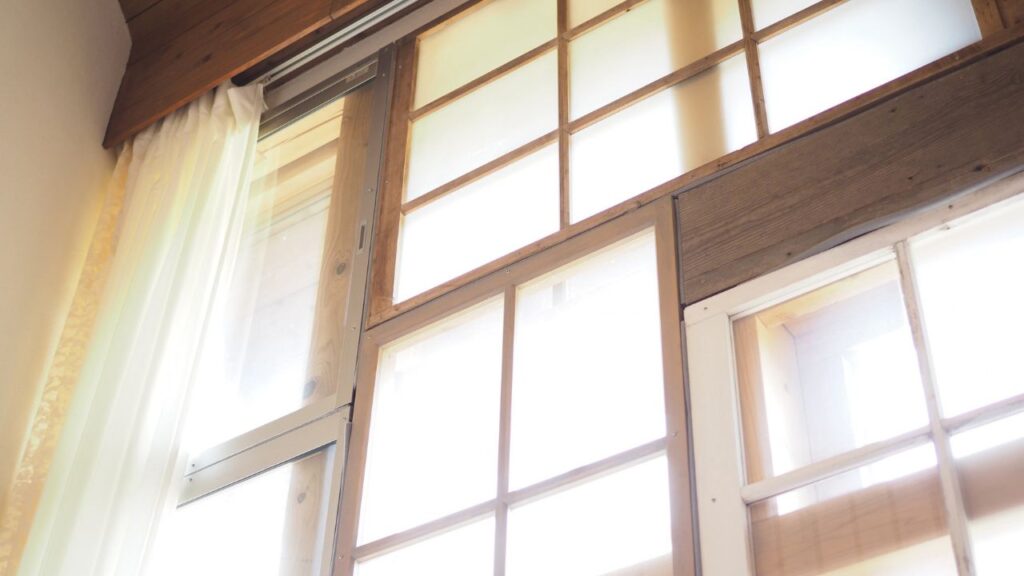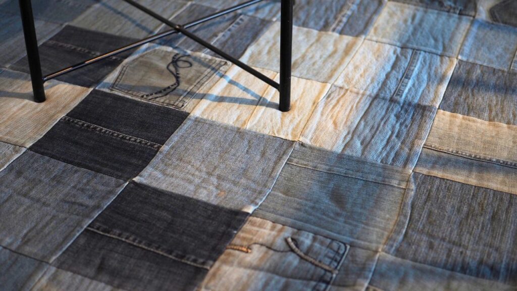 例えばカーテンは、使われなくなった布の端切れをつなぎ合わせて作られています。